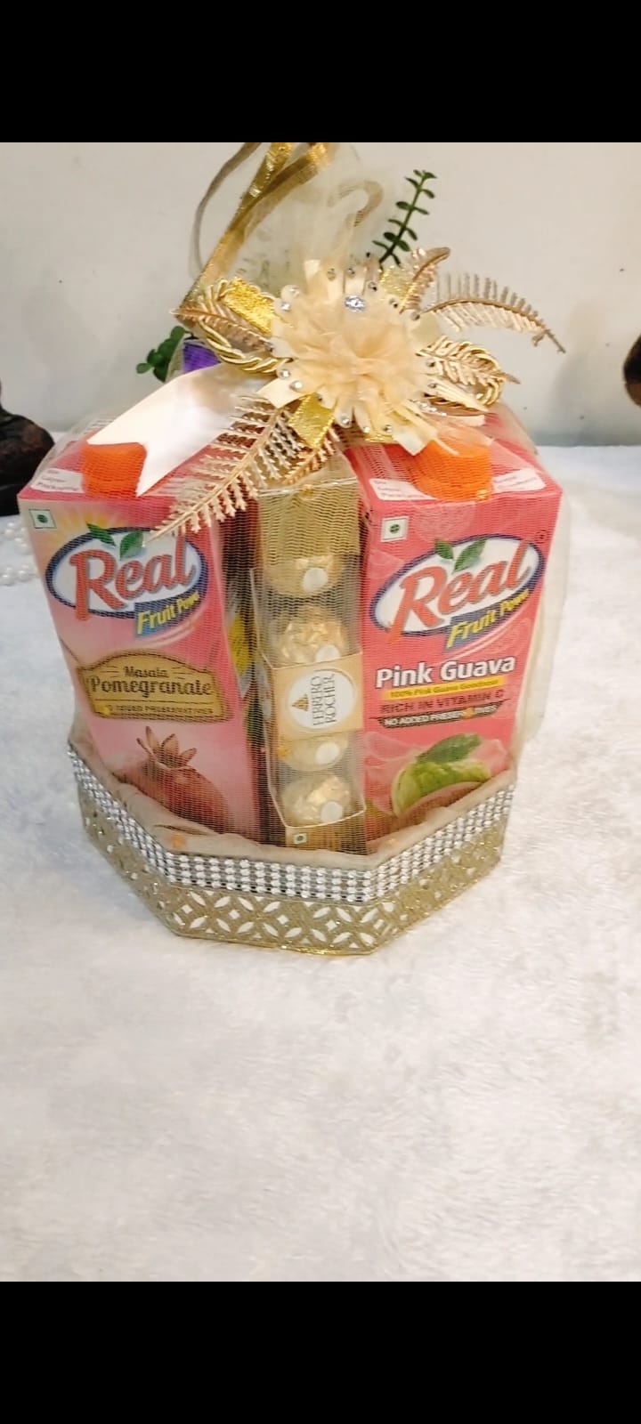 πΈ Decorative Basket with Elegant Golden Net & Floral Embellishment